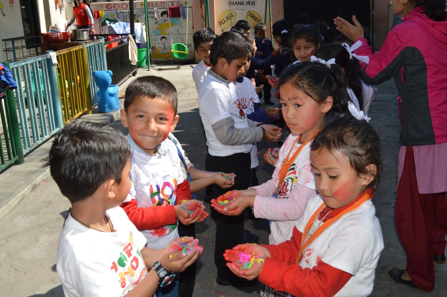Holi is a popular ancient Hindu festival also known as the Festival of Spring, the Festival of Colours or the Festival of Love. The festival celebrates the eternal and divine love of Radha Krishna. It also signifies the triumph of good over evil, as it celebrates the victory of Lord Vishnu as Narasimha Narayana over Hiranyakashipu. It originated and is predominantly celebrated in the Indian subcontinent but has also spread to other regions of Asia and parts of the Western world through the South Asian diaspora.